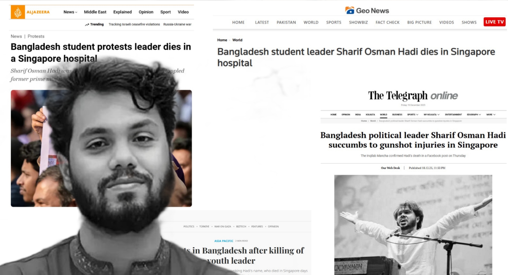 আন্তর্জাতিক গণমাধ্যমে হাদির মৃত্যুর খবর